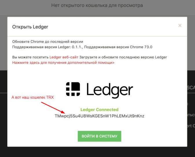 - Наведите курсор на ВОЙТИ, затем нажмите на LEDGER.