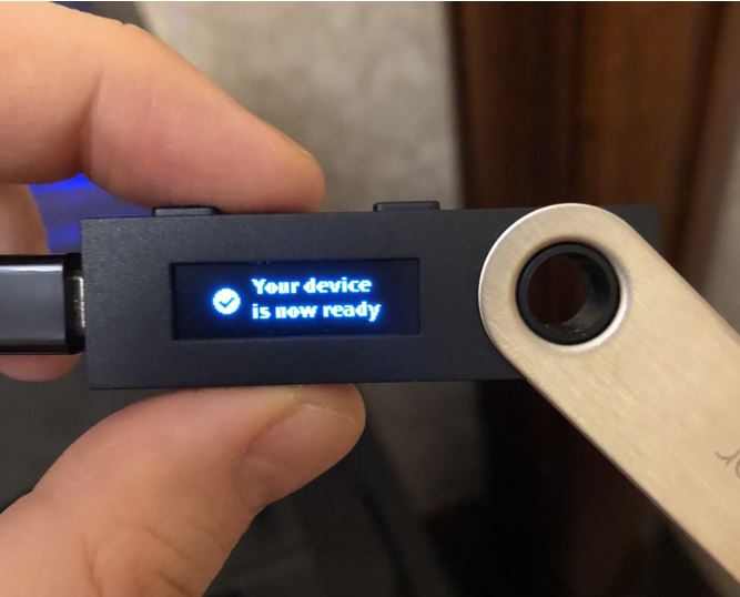 - Дальше смотрим на аппаратный кошелек Ledger и подтверждаем в нем операцию.