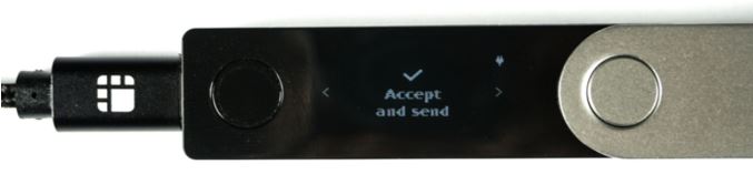 - Выполнение транзакции производится двойным нажатием клавиши аппаратного кошелька.