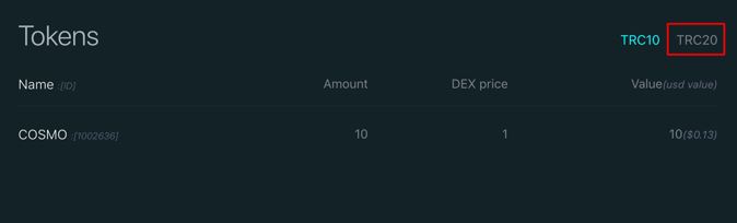 Все токены блокчейна Tron разделены на: TRC10, TRC20 и TRX. Каждый аккаунт имеет право на бесплатную раздачу 10 токенов COSMO.