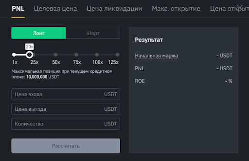 ΠΠ° Π±ΠΈΡΠΆΠ΅ ΠΊΡΠΈΠΏΡΠΎΠ²Π°Π»ΡΡ Binance ΡΠ°ΠΊΠΆΠ΅ Π΅ΡΡΡ ΡΠ°ΠΊΠΎΠΉ ΠΏΠΎΠ»Π΅Π·Π½ΡΠΉ ΠΈΠ½ΡΡΡΡΠΌΠ΅Π½Ρ ΠΊΠ°ΠΊ ΠΊΠ°Π»ΡΠΊΡΠ»ΡΡΠΎΡ, ΠΊΠΎΡΠΎΡΡΠΉ ΠΏΠΎΠ·Π²ΠΎΠ»ΡΠ΅Ρ ΡΠ°ΡΡΡΠΈΡΠ°ΡΡ ΡΡΠΎΠΈΠΌΠΎΡΡΡ ΡΠ΄Π΅Π»ΠΊΠΈ ΠΈ Π²ΠΎΠ·ΠΌΠΎΠΆΠ½ΡΡ ΠΏΡΠΈΠ±ΡΠ»Ρ Π² Π·Π°Π²ΠΈΡΠΈΠΌΠΎΡΡΠΈ ΠΎΡ Π²Ρ ΠΎΠ΄Π° ΠΈ Π²ΡΡ ΠΎΠ΄Π° ΠΈΠ· ΠΏΠΎΠ·ΠΈΡΠΈΠΈ, ΡΡΠΈΡΡΠ²Π°Ρ ΠΏΡΠΈΠΌΠ΅Π½ΡΠ΅ΠΌΠΎΠ΅ ΠΊΡΠ΅Π΄ΠΈΡΠ½ΠΎΠ΅ ΠΏΠ»Π΅ΡΠΎ. ΠΠ½ΡΡΡΡΠΌΠ΅Π½Ρ ΠΎΡΠ΅Π½Ρ ΠΏΡΠΎΡΡ Π² ΠΈΡΠΏΠΎΠ»ΡΠ·ΠΎΠ²Π°Π½ΠΈΠΈ ΠΈ ΠΏΠΎΠΌΠΎΠΆΠ΅Ρ Π³ΡΠ°ΠΌΠΎΡΠ½ΠΎ ΠΎΡΠ΅Π½ΠΈΡΡ Π²ΡΠ΅ ΡΠΈΡΠΊΠΈ ΠΏΠ΅ΡΠ΅Π΄ ΠΎΡΠΊΡΡΡΠΈΠ΅ΠΌ ΡΠ΄Π΅Π»ΠΊΠΈ.